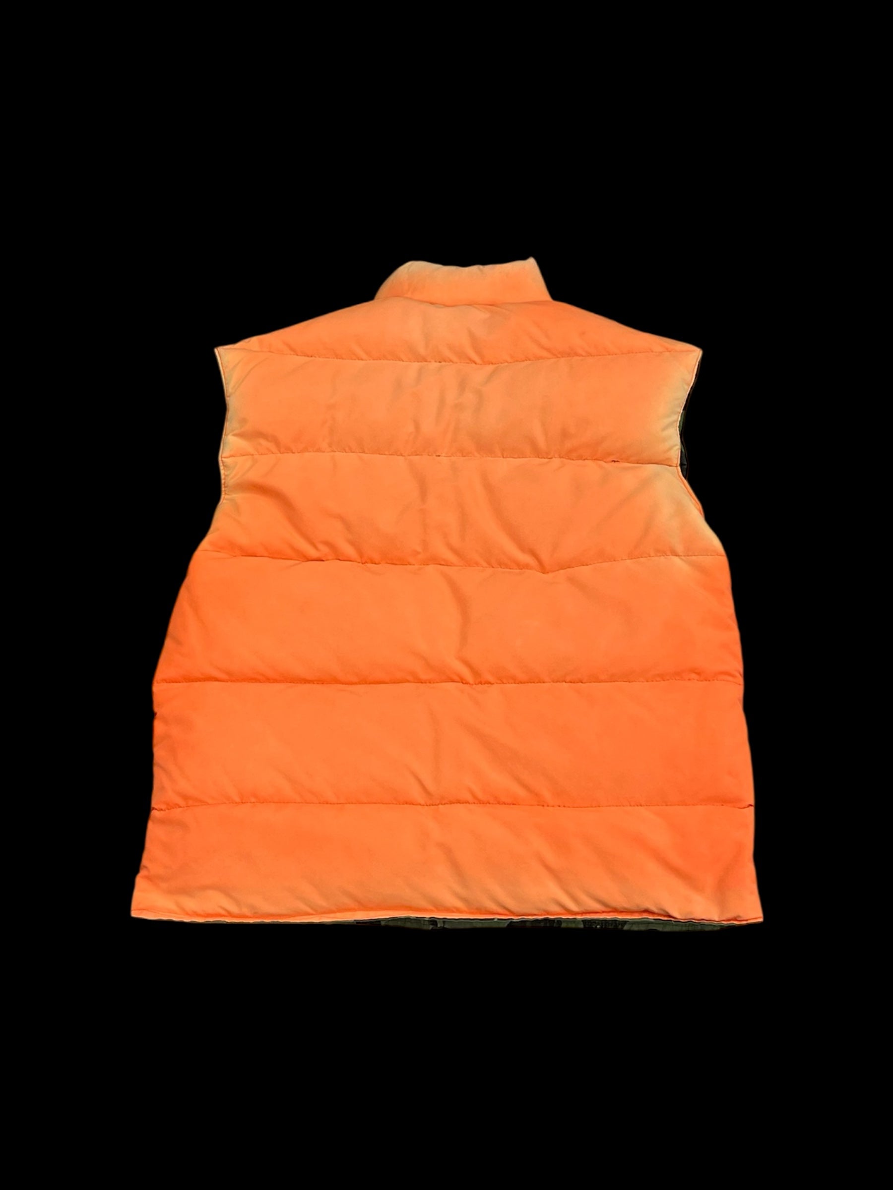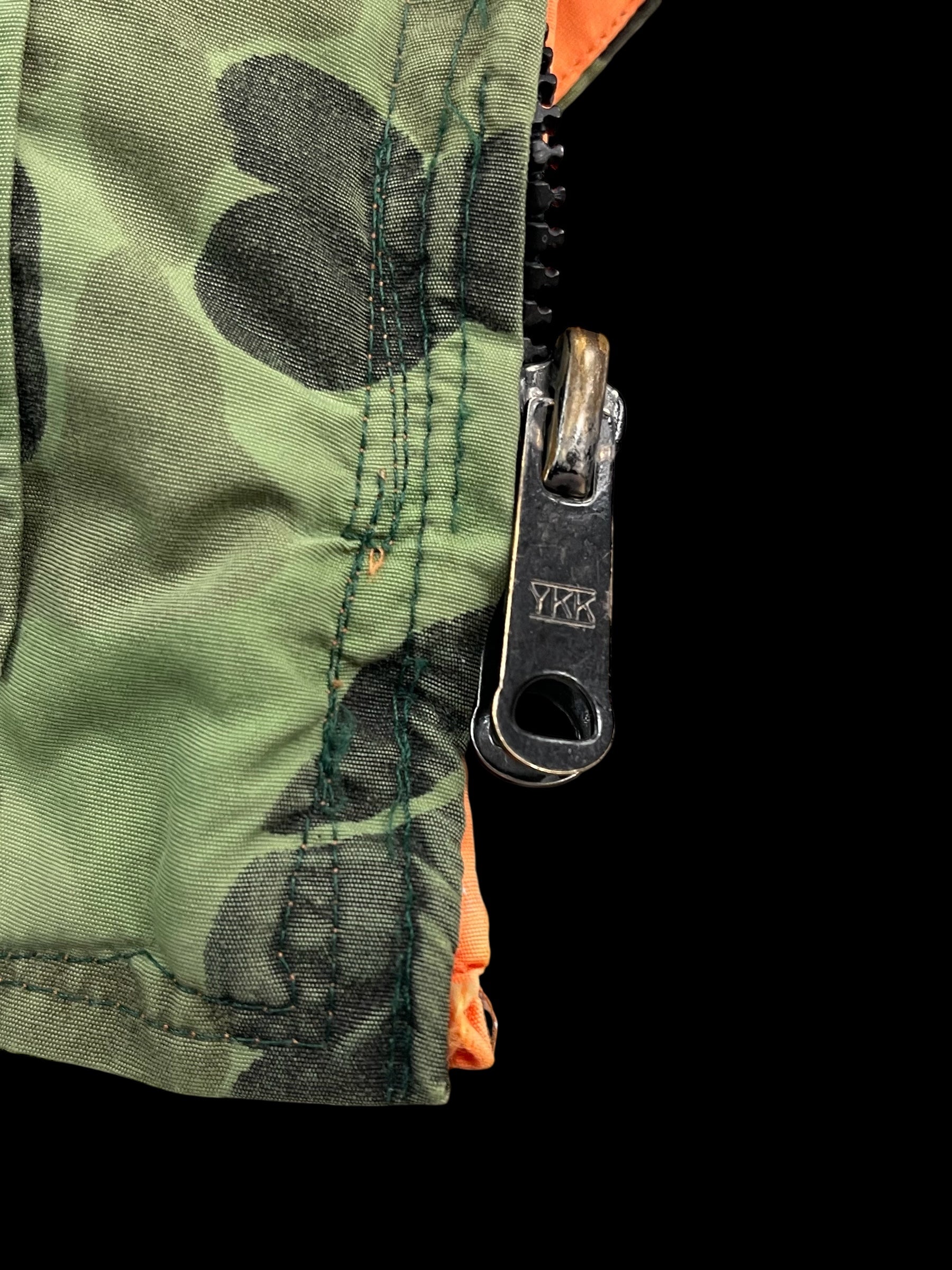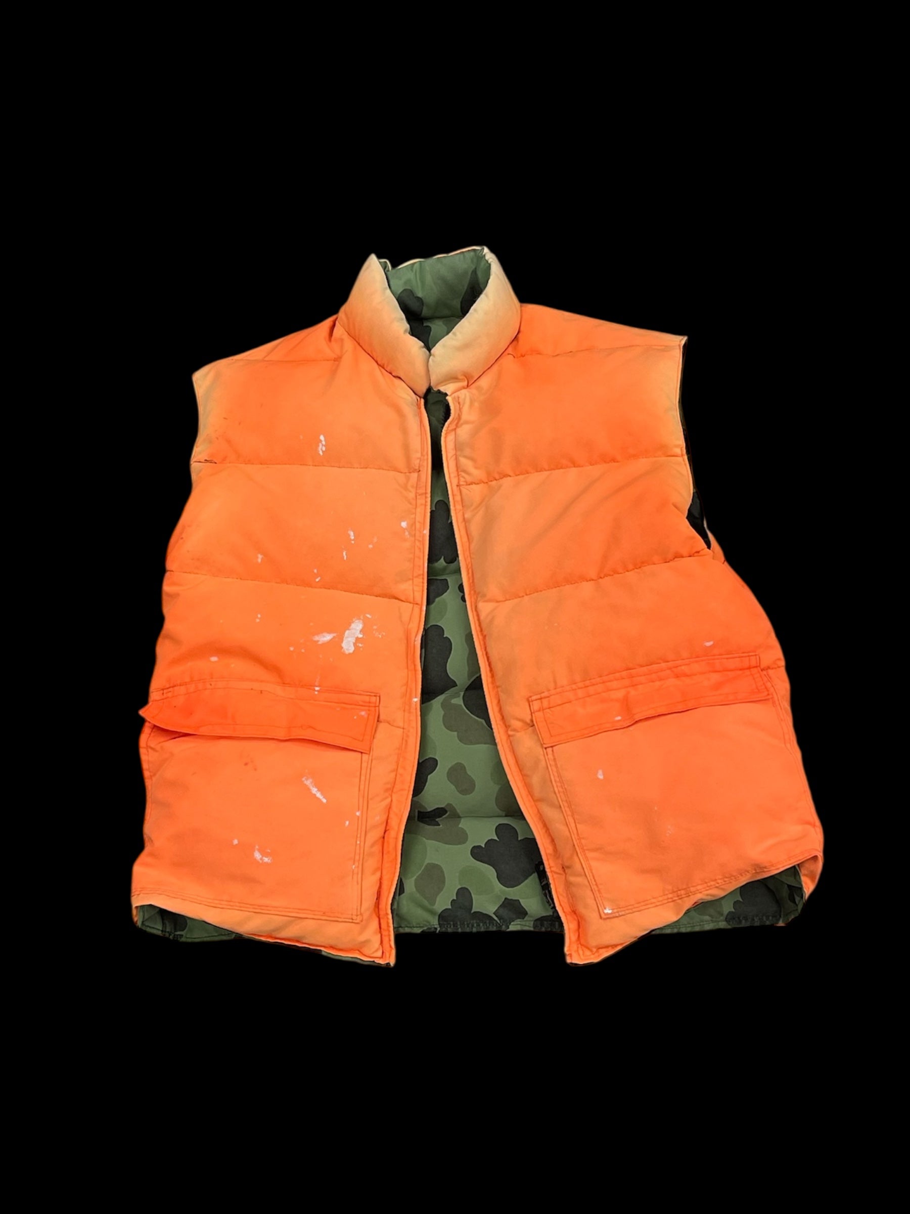 made in USA/vintage/woodland camo puffer/zip closure/flap pocket utility storage/reversible/signs of wear*