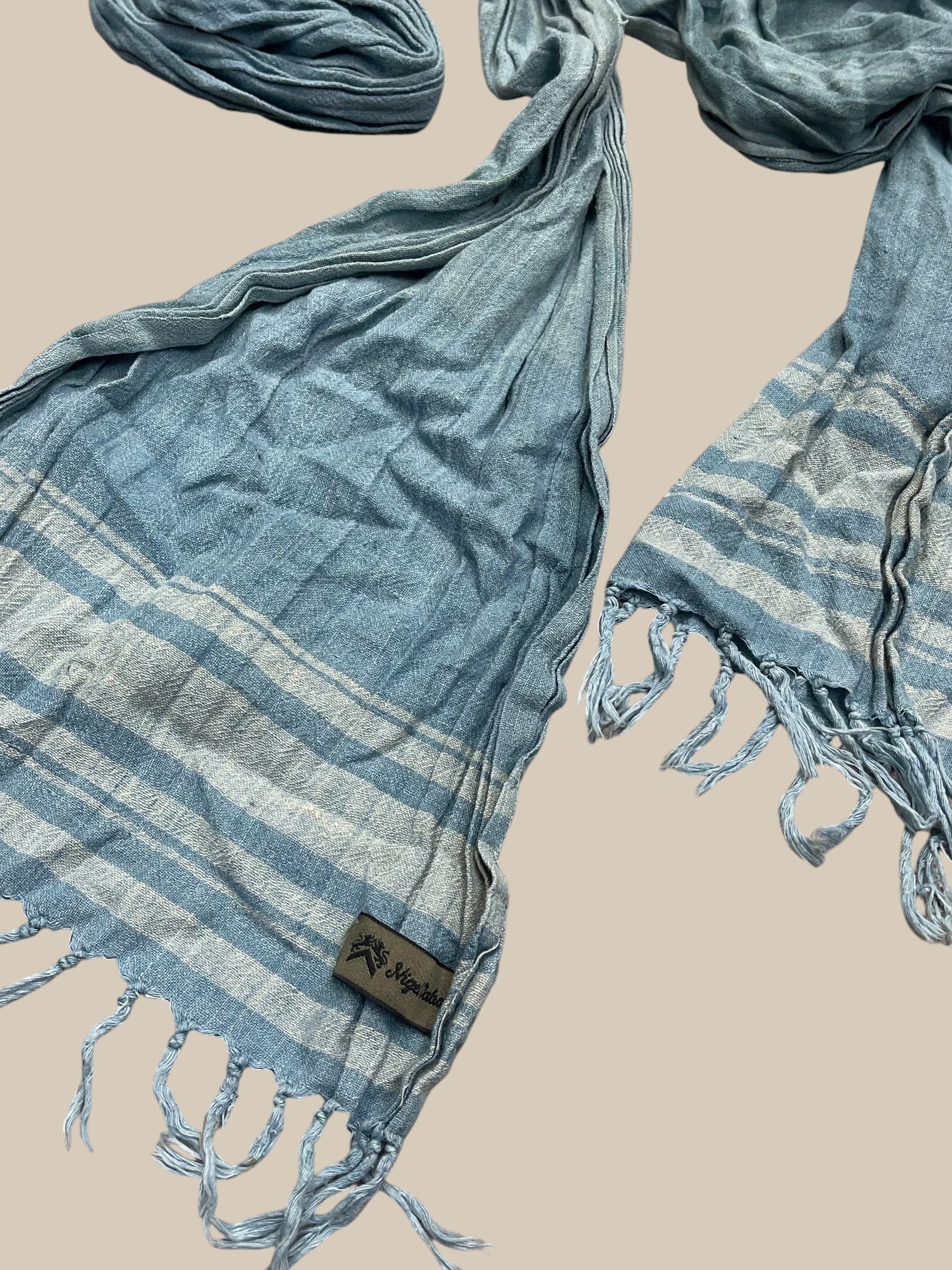 made in JAPAN/Nigel Cabourn vintage linen indigo scarf/dead stock*