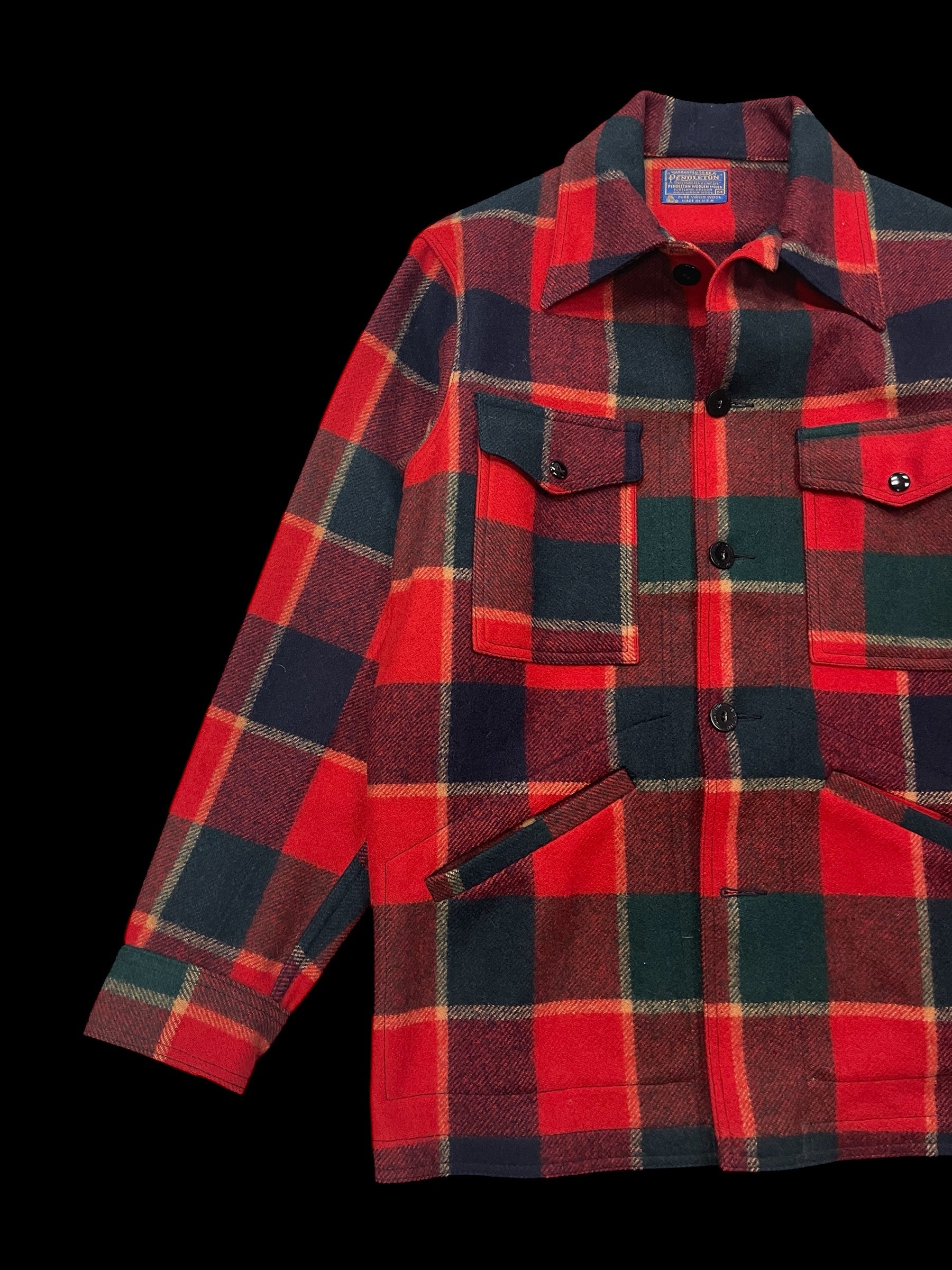 made in USA/Pendleton 100% virgin wool shirt jacket/multi-color plaid/embossed buttons/button-closure/dead stock*